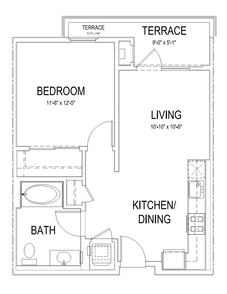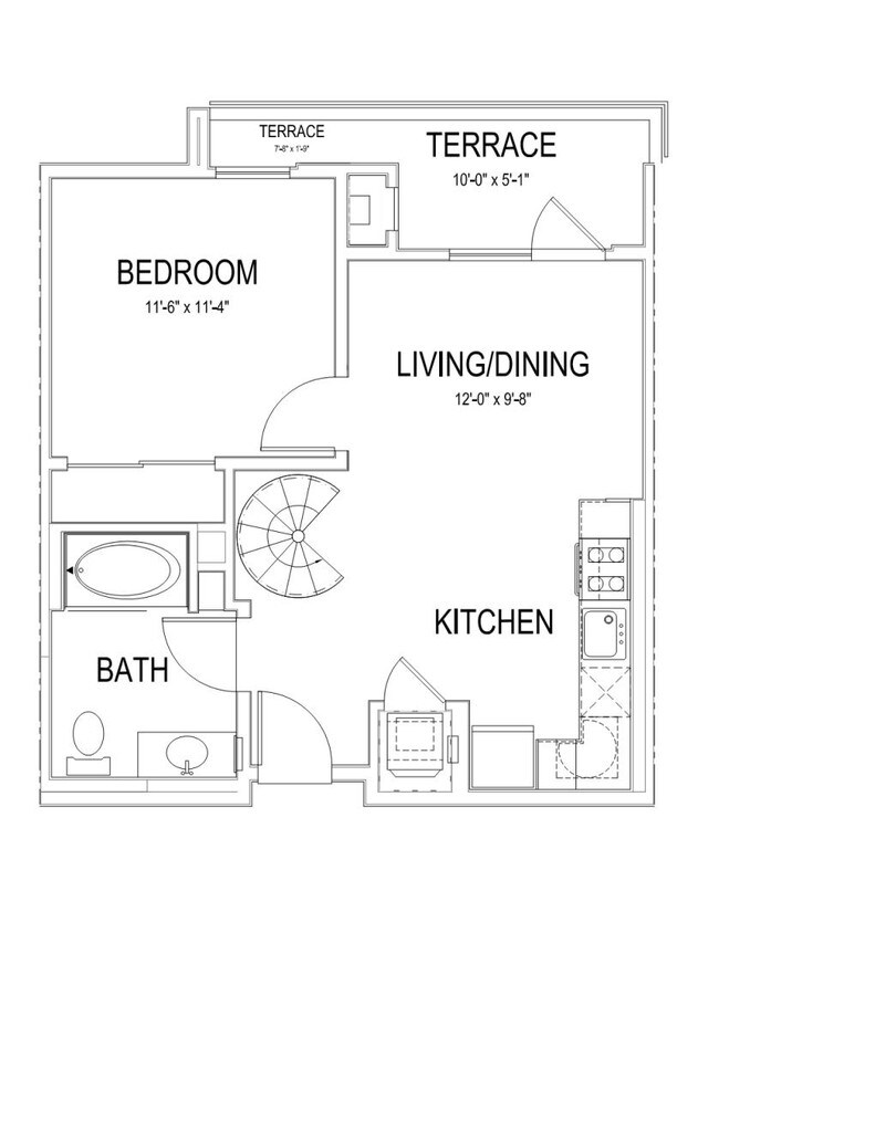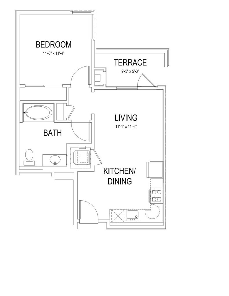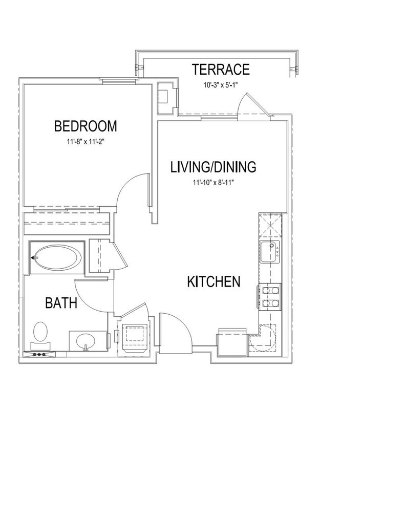 Estudio, 1 Baño, 435 pies²Disponible AhoraGalería del Modelo