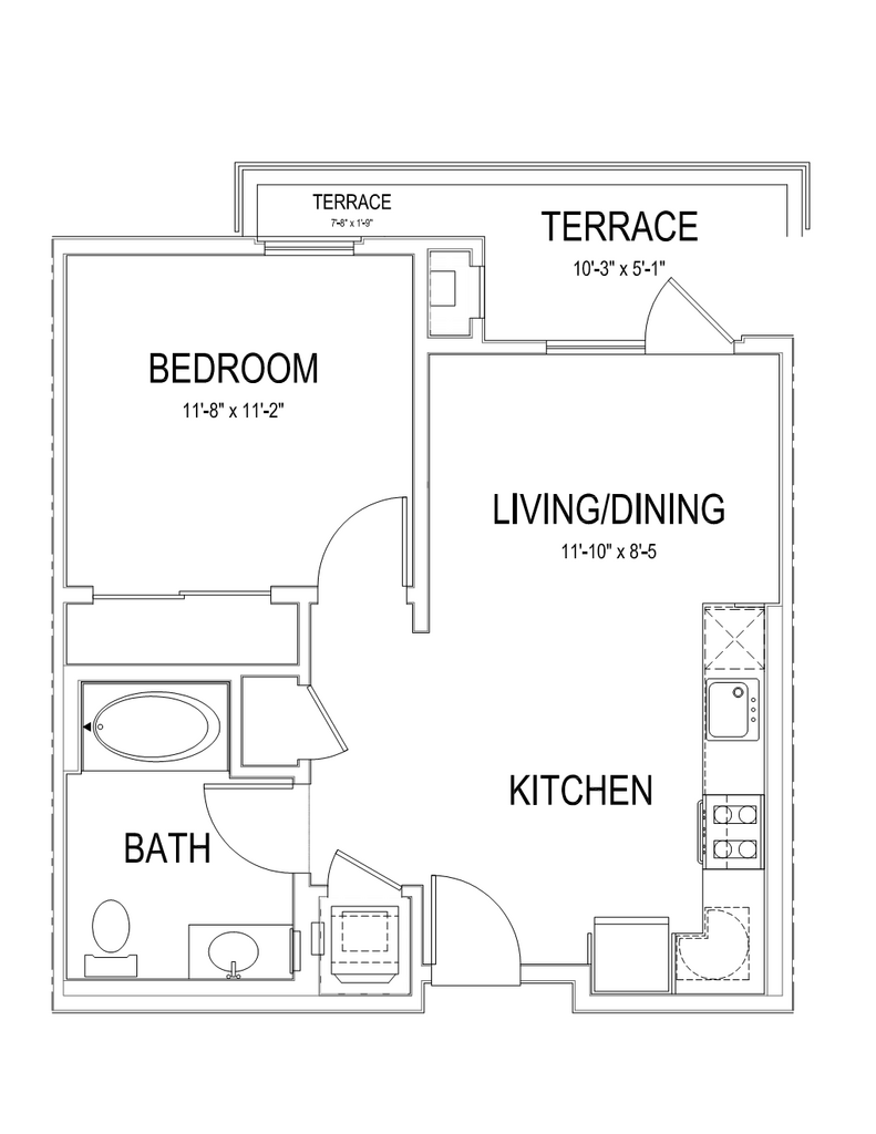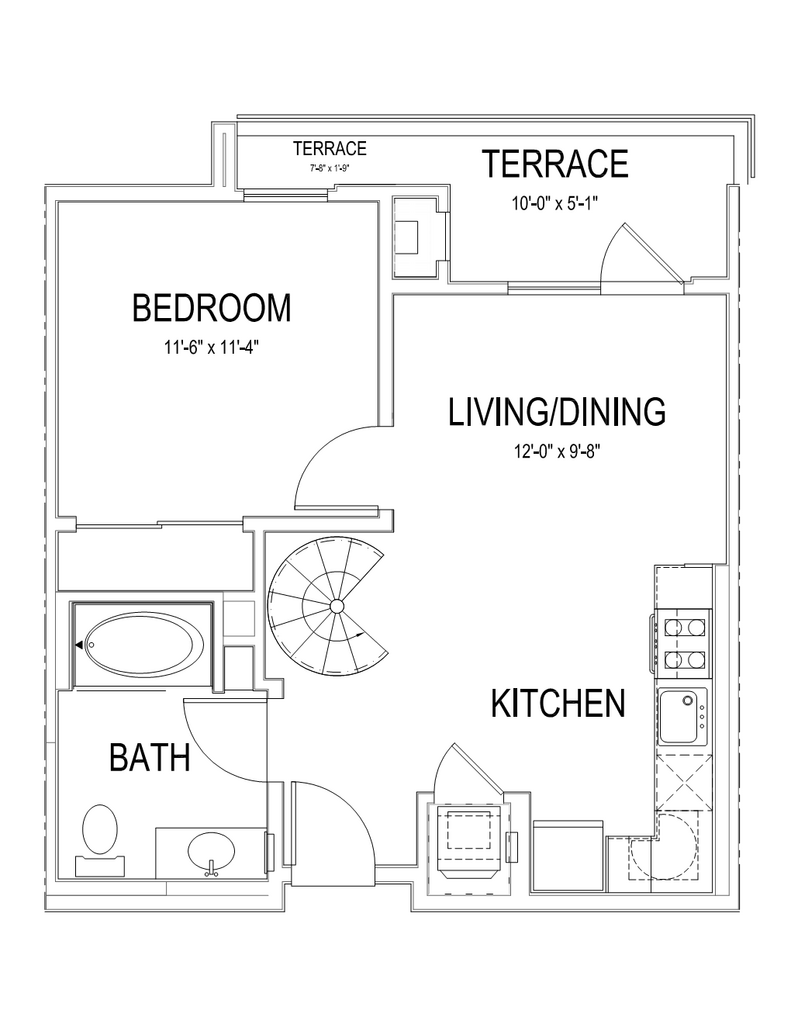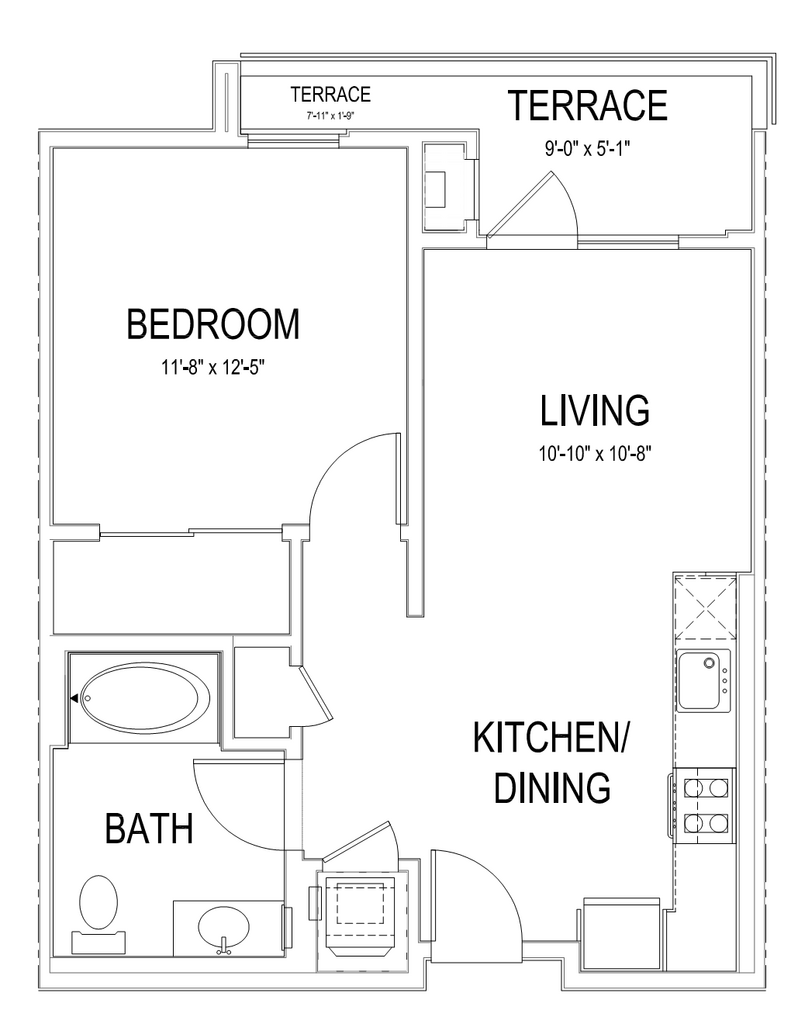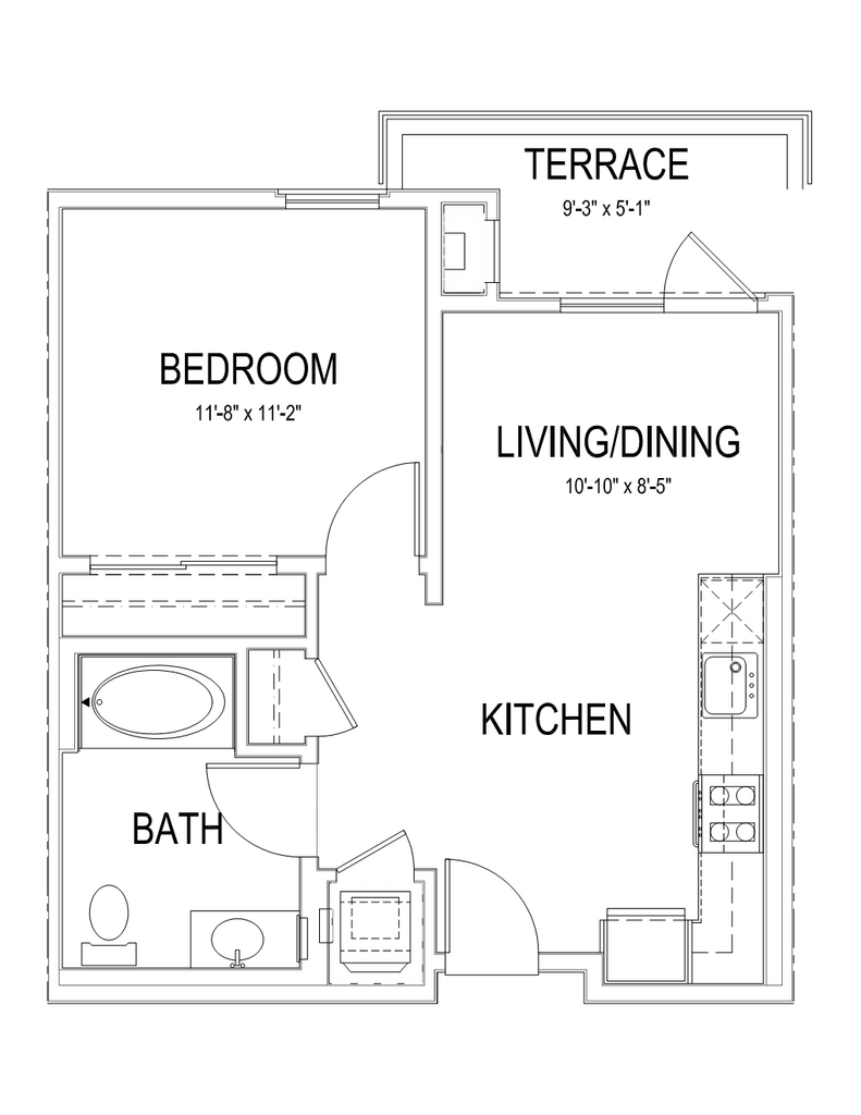 Estudio, 1 Baño, 435 pies²Disponible AhoraGalería del Modelo