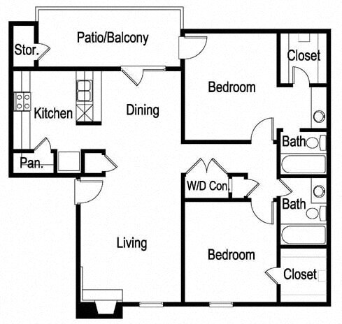 2 Dormitorios, 2 Baños, 967 pies²Galería del Modelo