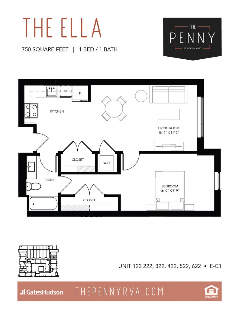 The Penny at Jackson Ward se encuentra en el Barrio Jackson Ward y el código postal 23220 de Richmond, VA. Esta comunidad está gestionada profesionalmente por Gates, Hudson & Associates - Residential