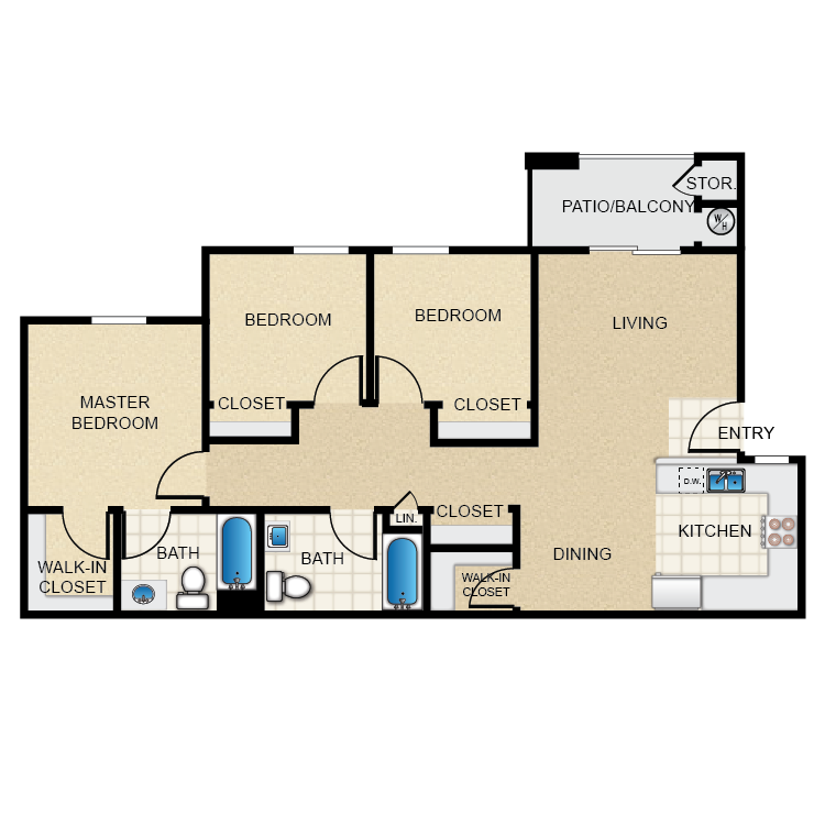 2 Bed 2 Bath - Plano 1 3 Dormitorios