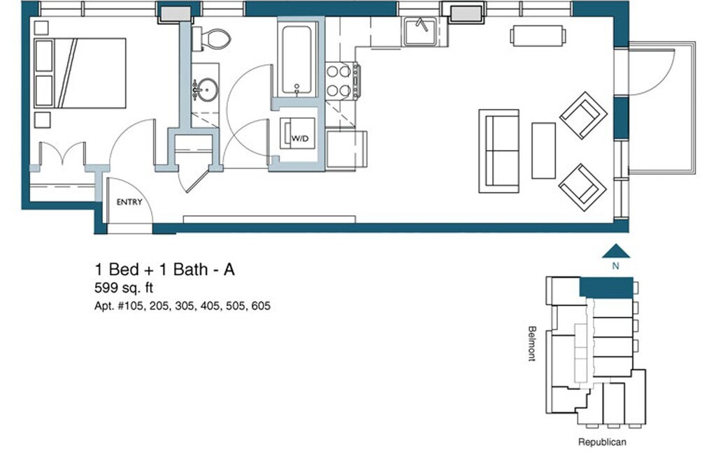 Studio (MFTE) - Plano 10 Unidad de apartamento: 309Modelo de apartamento: Studio (MFTE)$1,500Estudio, 1 Baño, 442 sq ftDisponible AhoraStudio
