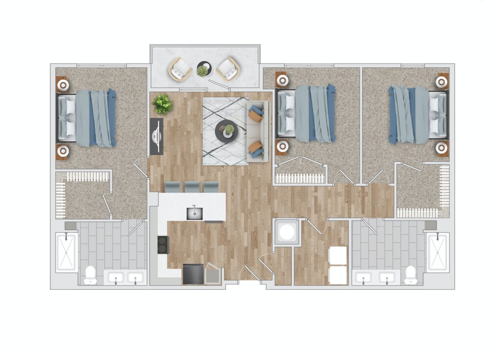 Modelo de apartamento: A3Desde $1,7501 Dormitorio, 1 Baño, 747 sq ftDisponible March 14, 2026![]()