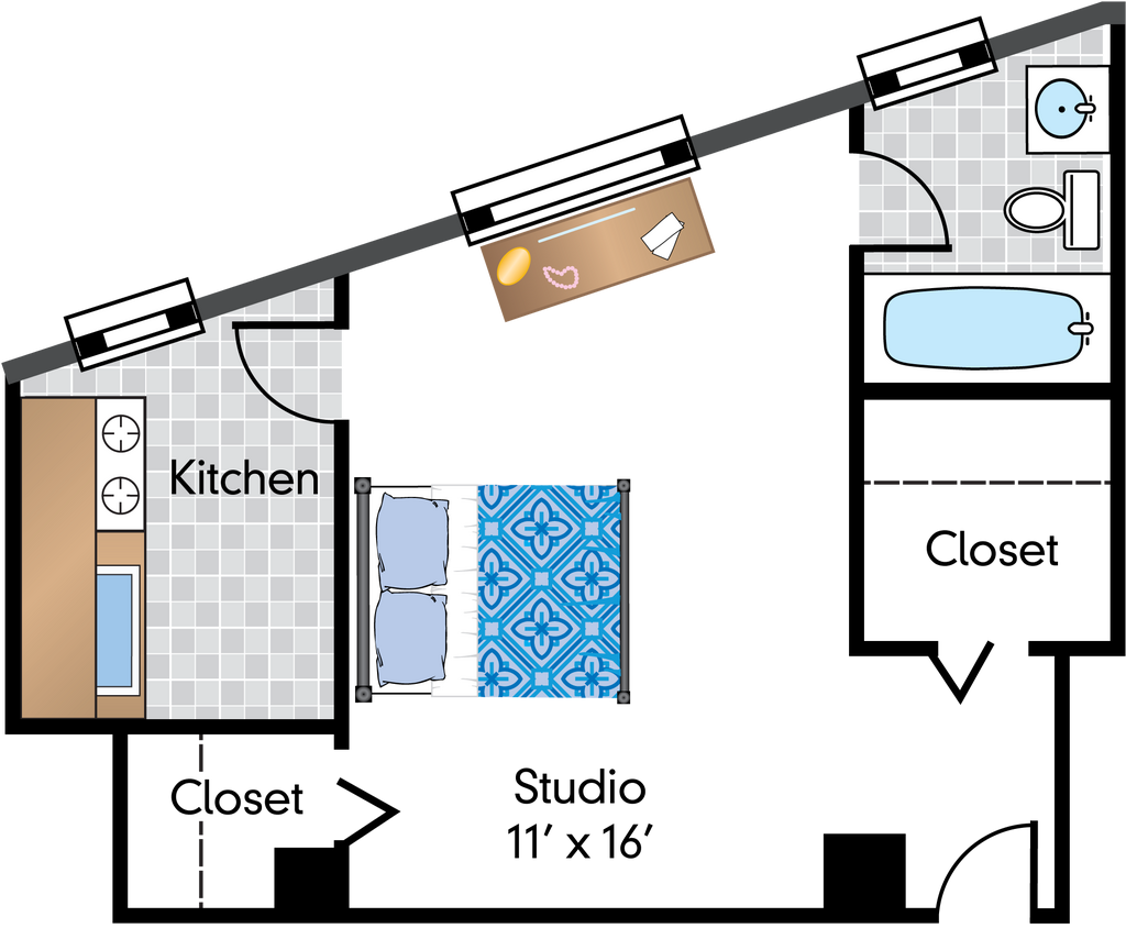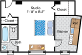 Estudio, 1 Baño, 428 pies²Disponible AhoraGalería del Modelo