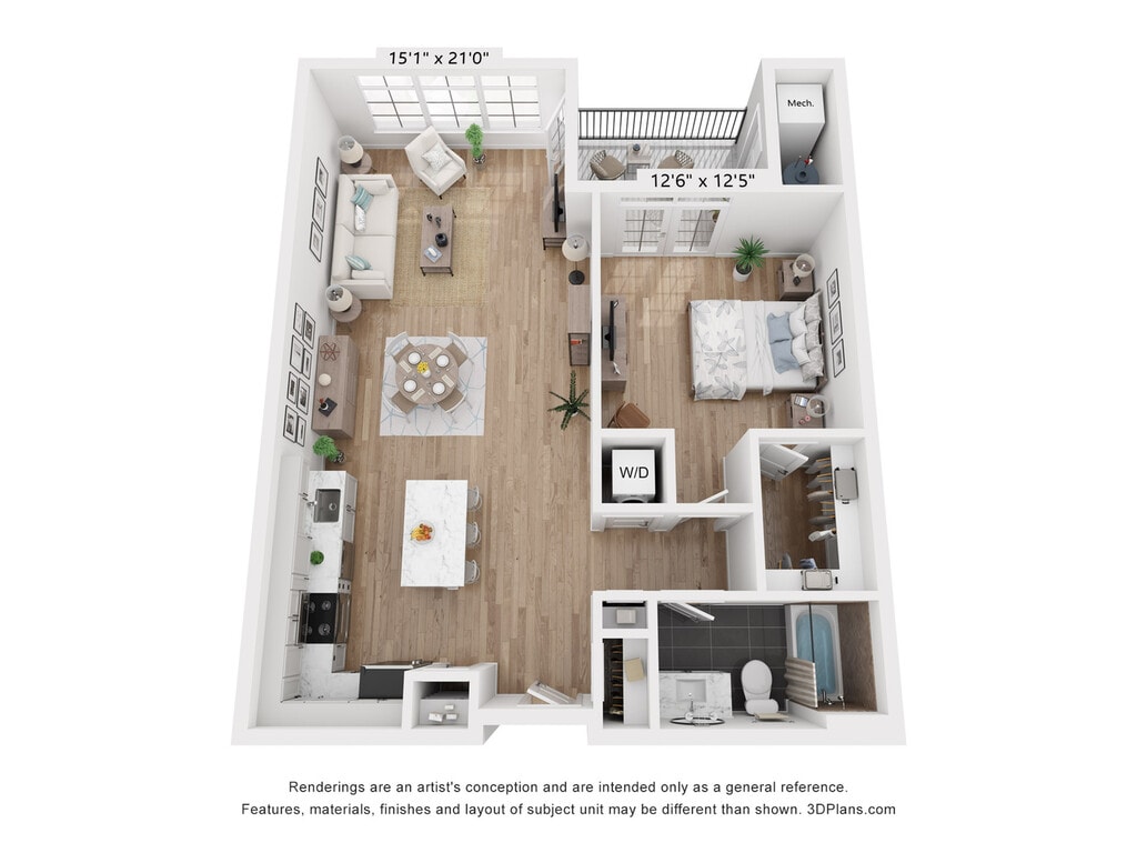 Modelo de apartamento: 1BDesde $1,7951 Dormitorio, 1 Baño, 631 sq ftNo Disponible![]()