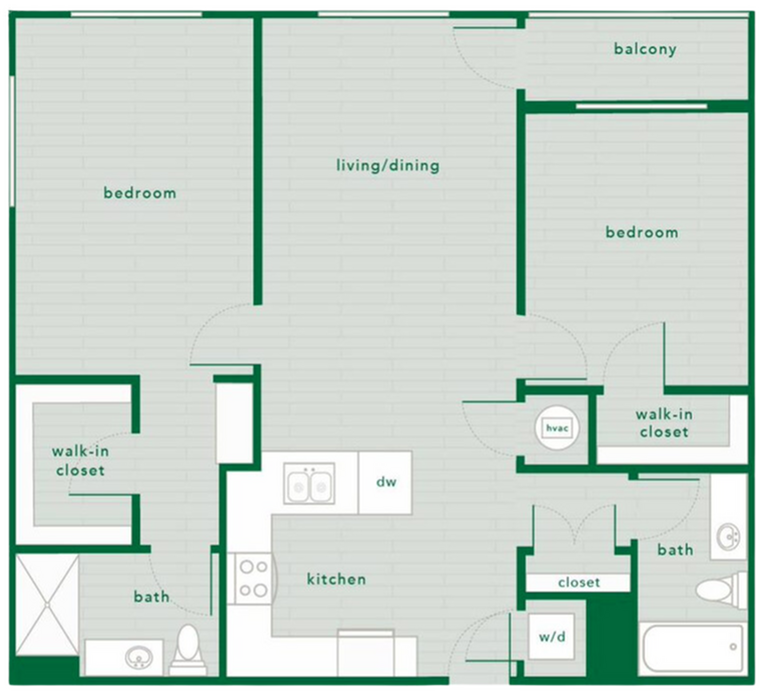 Modelo de apartamento: 2 Bed 2 Bath - 1,088 Sq. Ft.2 Dormitorios, 2 Baños, 1088-1097 sq ftDisponible Ahora![]()
