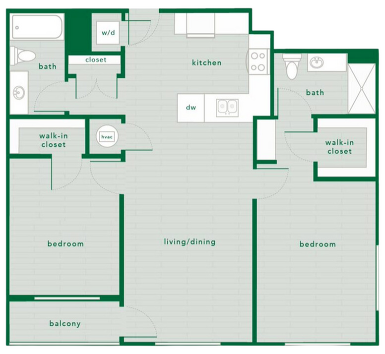 Modelo de apartamento: 2 Bed 2 Bath - 1,136 Sq. Ft.2 Dormitorios, 2 Baños, 1136 sq ftDisponible Ahora![]()
