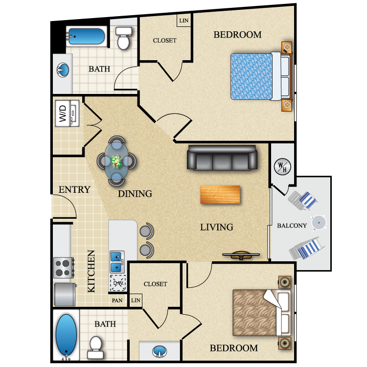Modelo de apartamento: Plan HDesde $2,119Estudio, 1 Baño, 568-587 sq ftDisponible Ahora![]()