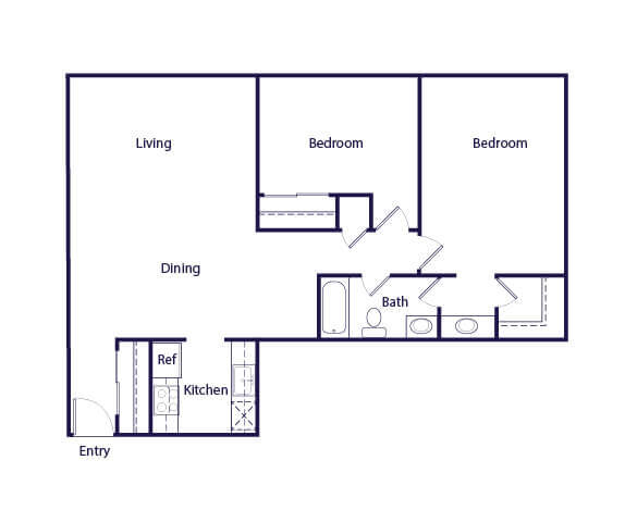 Modelo de apartamento: B1Desde $1,3952 Dormitorios, 1 Baño, 954 sq ftDisponible Ahora![]()