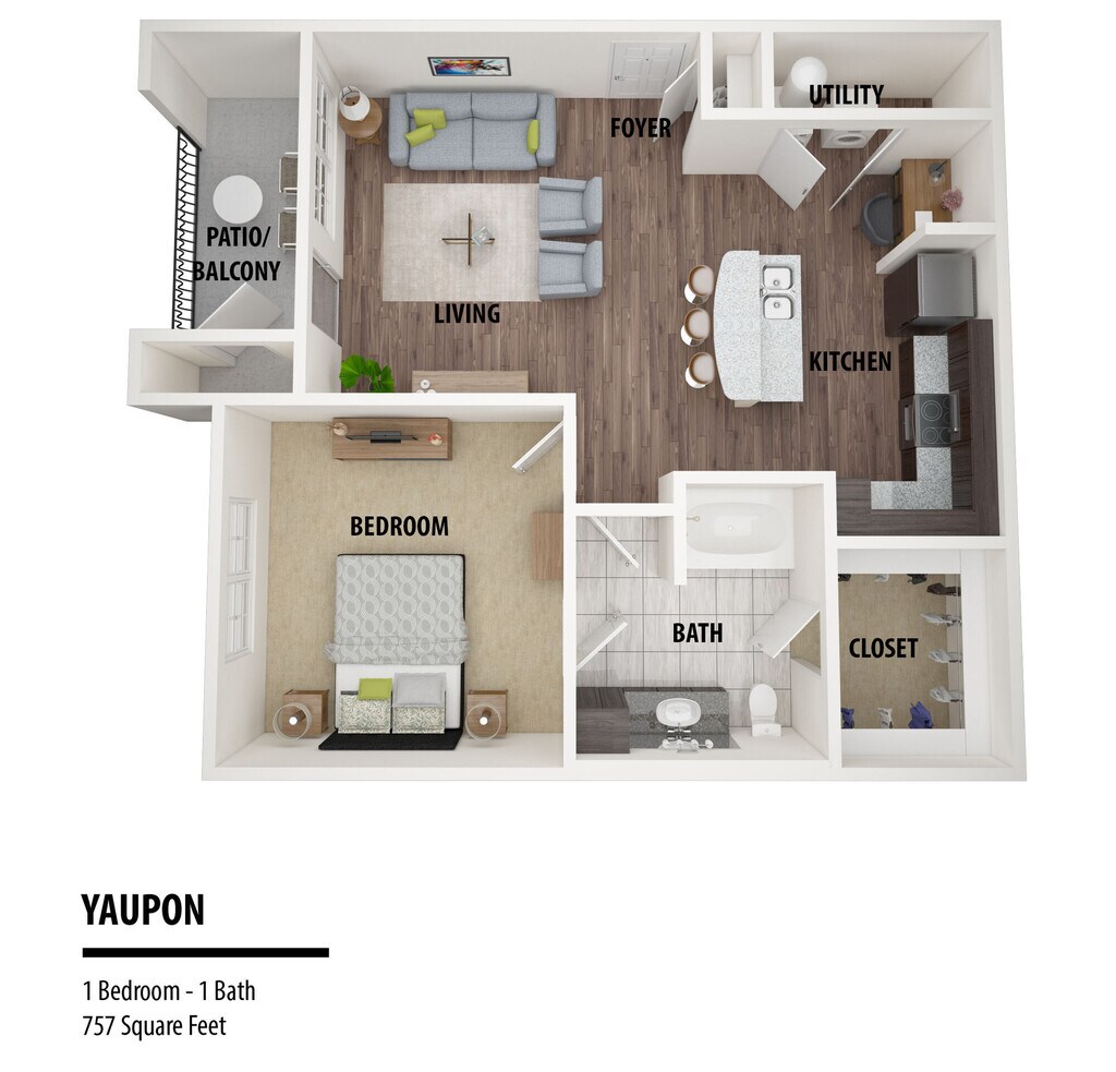 1 Dormitorio, 1 Baño, 757 pies²Precio Mensual TotalDisponible AhoraPrecio Mensual Total