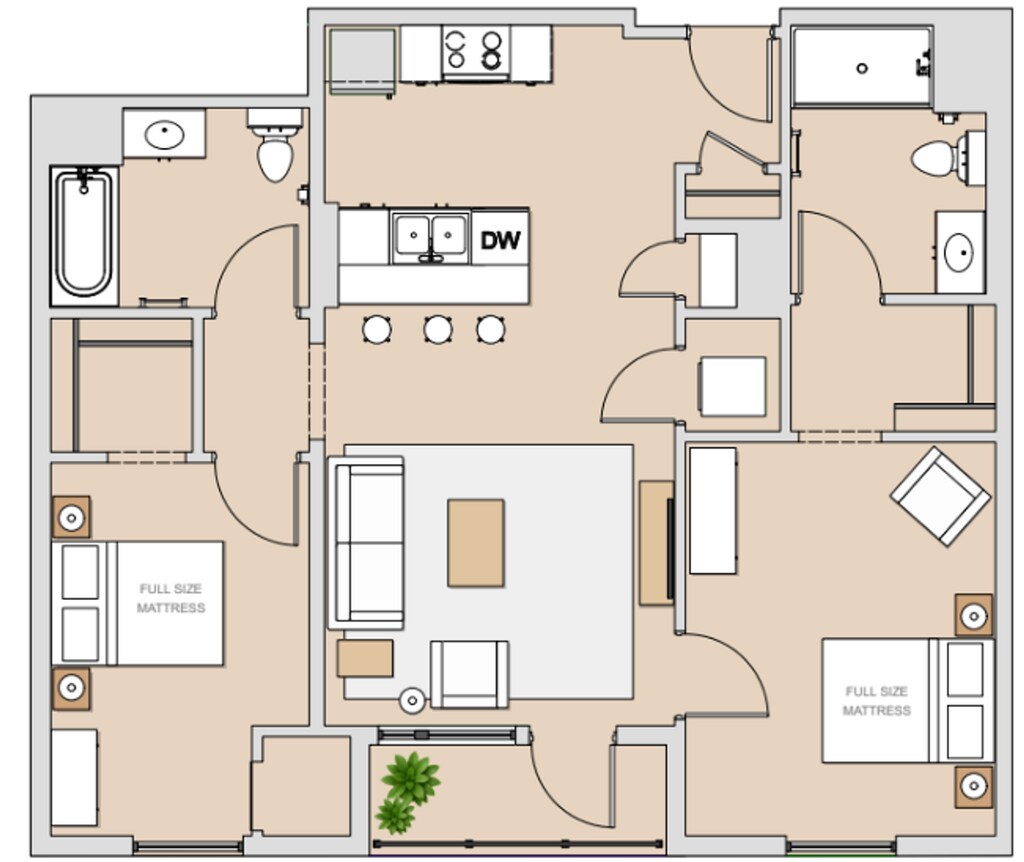 Modelo de apartamento: 2b/1b RoommateDesde $3,3502 Dormitorios, 1 Baño, 855 sq ftDisponible AhoraPlanosFotos![]()