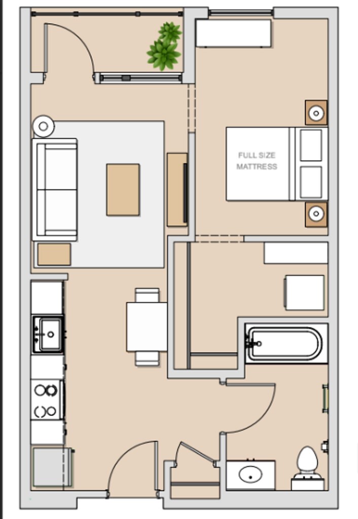 Studio, 1 bath - Plano 5 Unidad de apartamento: Modelo de apartamento: Studio, 1 bath$2,050Estudio, 1 Baño, 495 sq ftDisponible August 1, 2026![]()