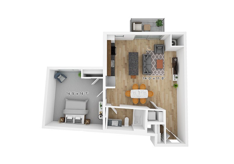 Modelo de apartamento: 1BR-C$1,5821 Dormitorio, 1 Baño, sq ftDisponible Ahora![]()