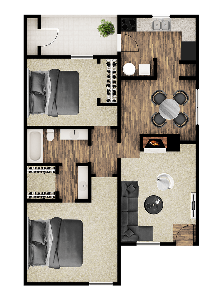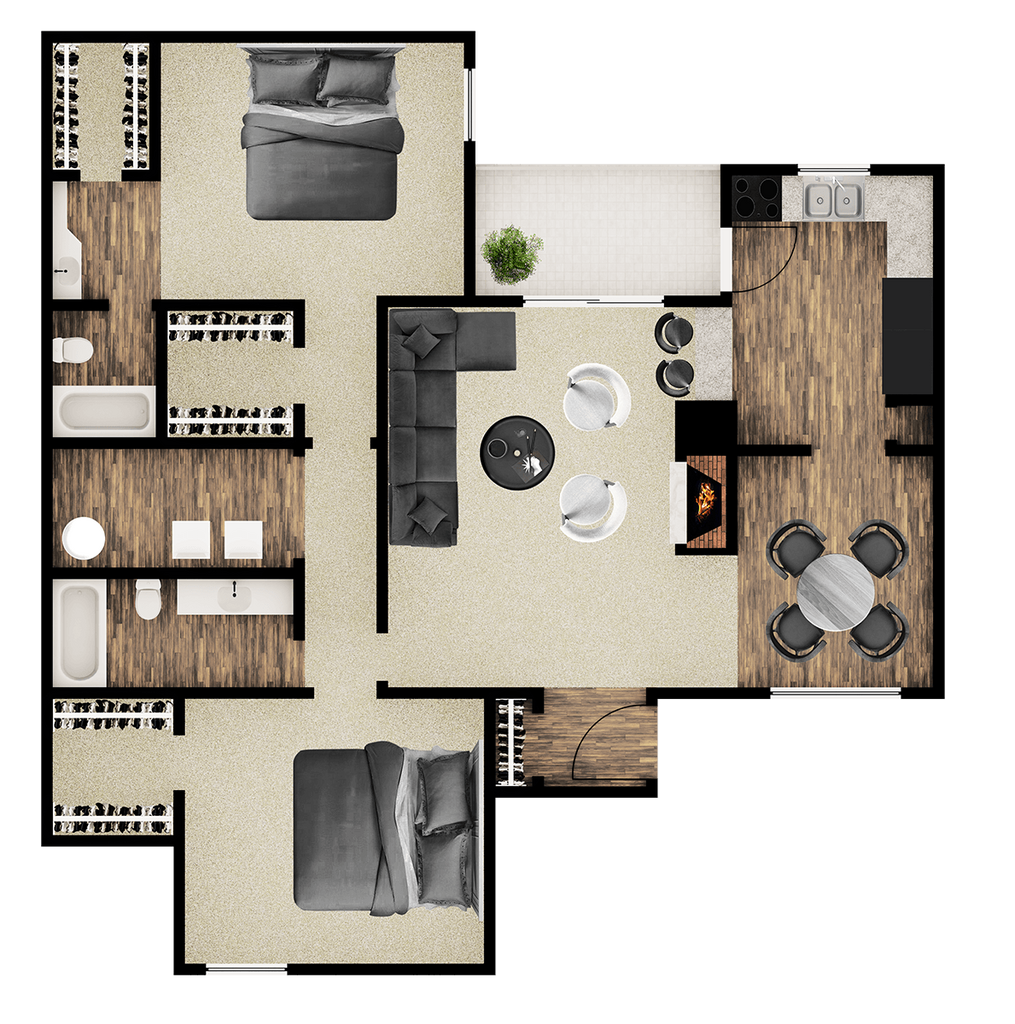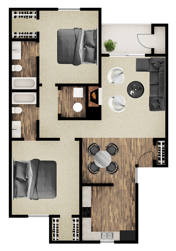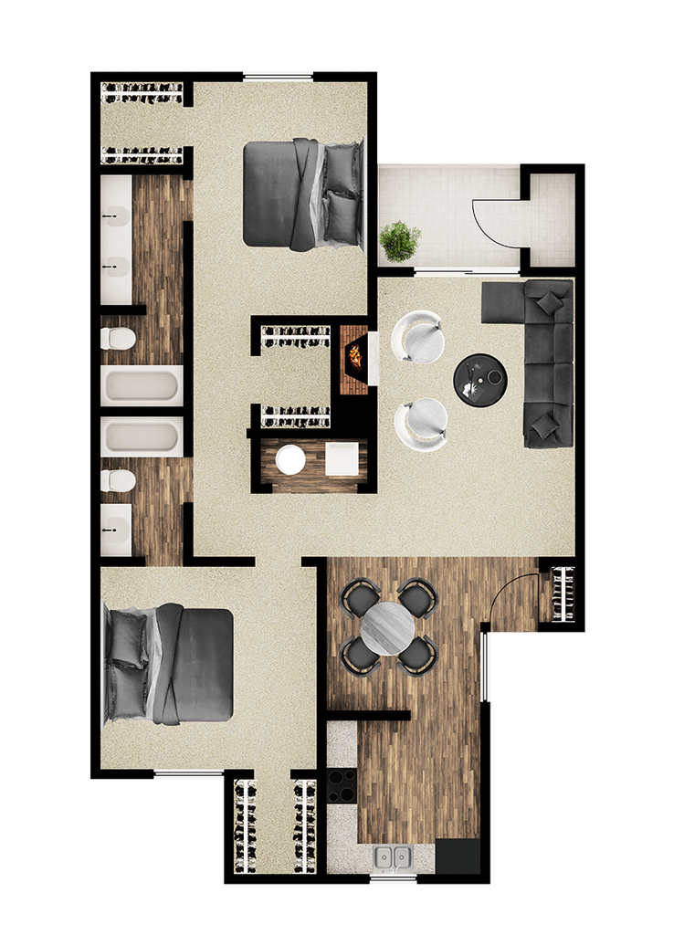 2 Dormitorios, 2 Baños, 970 pies²Disponible AhoraGalería del Modelo