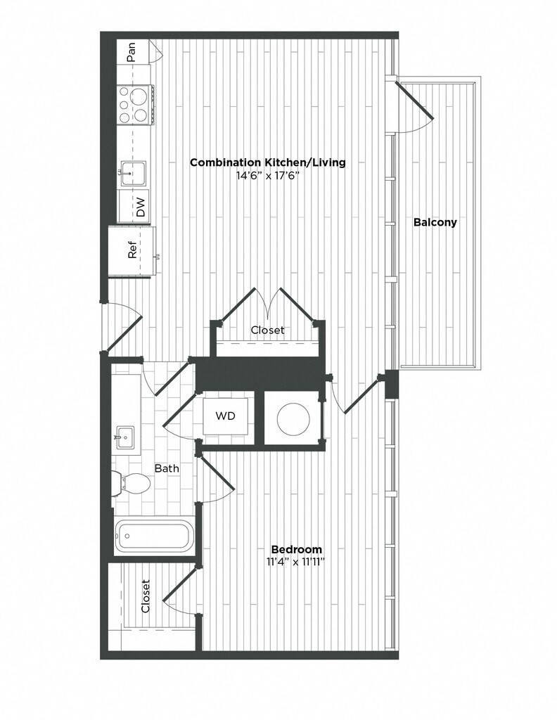 1 Dormitorio, 1 Baño, 688 pies²Disponible AhoraGalería del Modelo