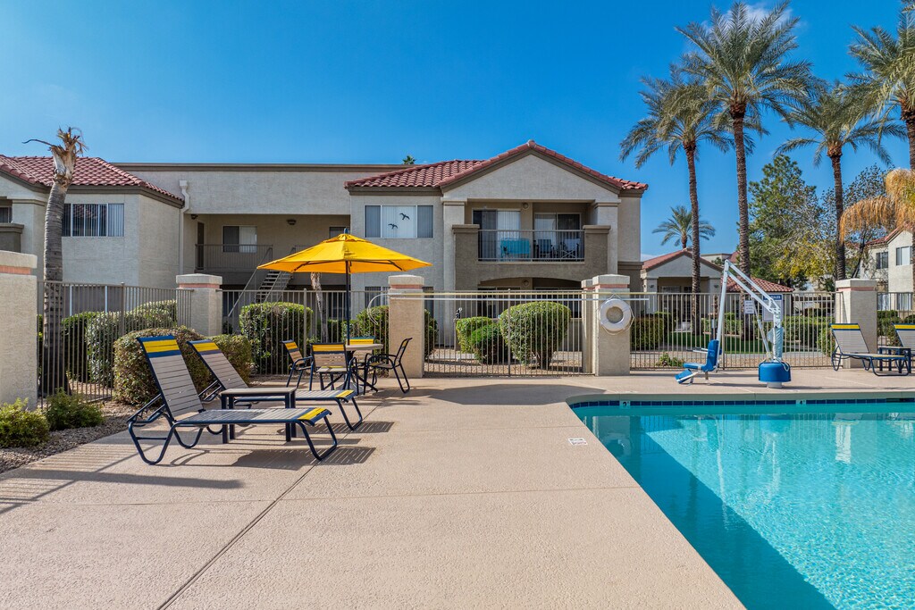 Ubicado en hermosos entornos desérticos con un lujoso paisaje, The Place at The Fountains at Sun City es su oasis personal. Esta comunidad cerrada de más de 55 personas está perfectamente ubicada en el corazón de Sun City, Arizona, rodeada de todos los destinos de compras, restaurantes y entretenimiento que está buscando en su próximo capítulo emocionante. Experimente lo mejor que la vida en apartamentos tiene para ofrecer en The Place at The Fountains at Sun City. Nuestros amplios apartamentos de uno y dos dormitorios incluyen elegantes cocinas con todos los electrodomésticos, hornos de autolimpieza, despensas y barras de desayuno. Los amplios vestidores, el aire y el calor centrales y los patios y balcones privados son características que le encantarán en su nuevo hogar.
