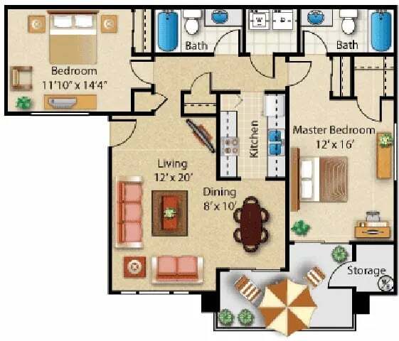 Modelo de apartamento: SaguaroLlame para Precios2 Dormitorios, 2 Baños, 1149 sq ftNo Disponible![]()