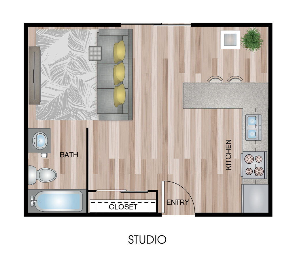 Estudio, 1 Baño, 300 pies²Galería del Modelo
