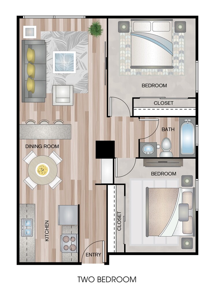 Modelo de apartamento: Two Beds, One BathDesde $9492 Dormitorios, 1 Baño, 700-860 sq ftDisponible AhoraPlanosFotos![]()