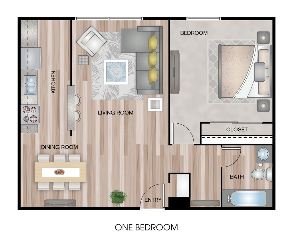 Modelo de apartamento: One Bed, One Bath$8751 Dormitorio, 1 Baño, 650 sq ftDisponible Ahora![]()