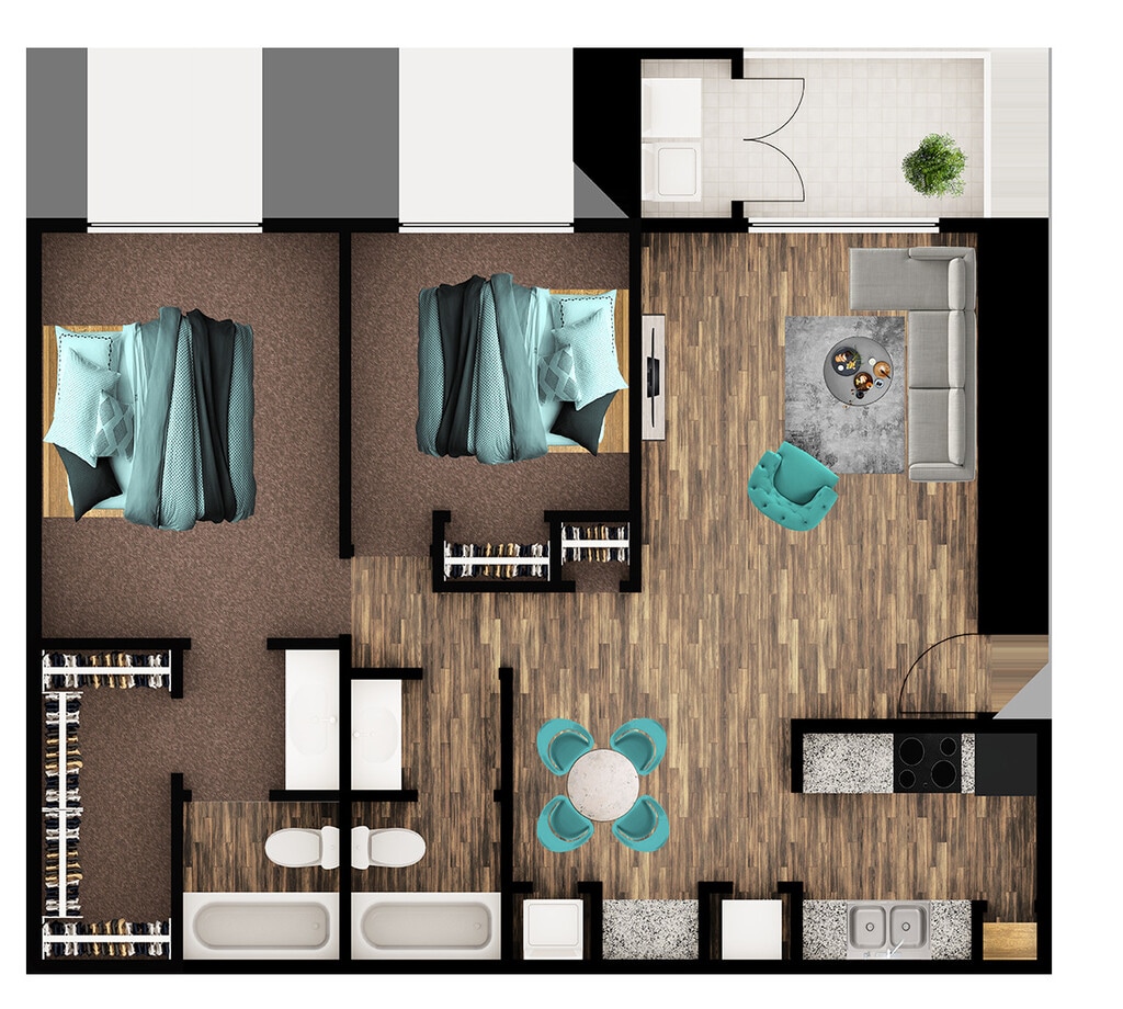 1 Dormitorio, 1 Baño, 720 pies²Disponible AhoraEl más grandeEsta opción tiene las unidades más grandes para este modeloGalería del Modelo
