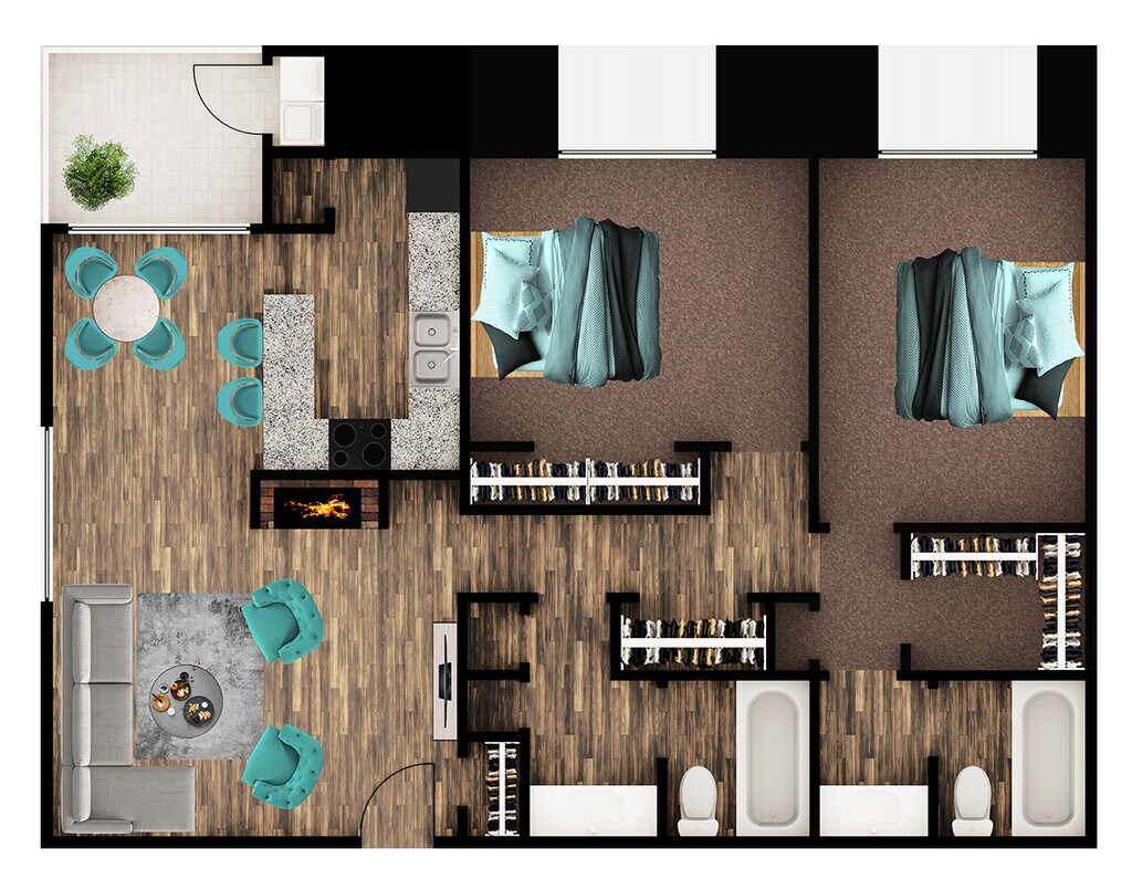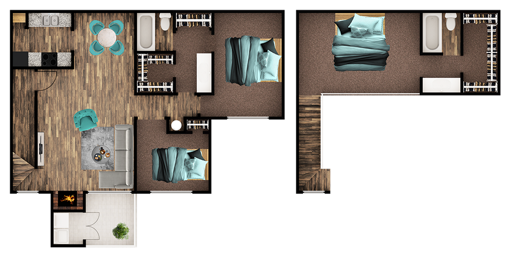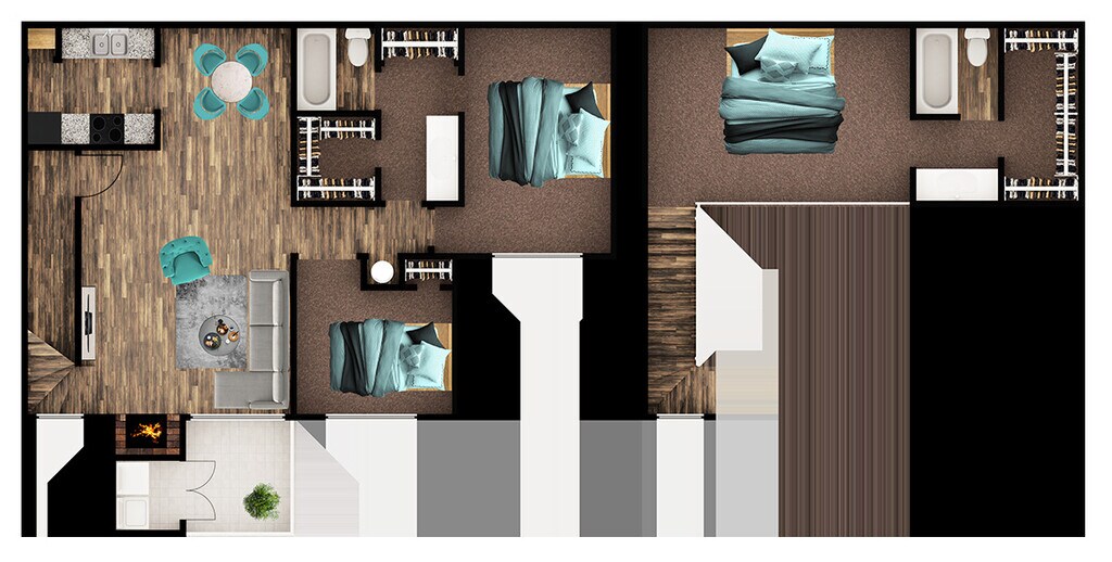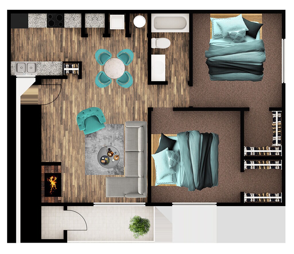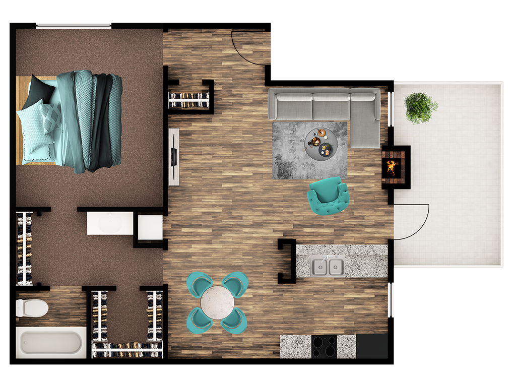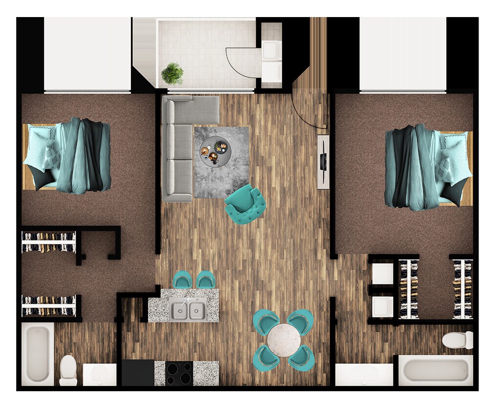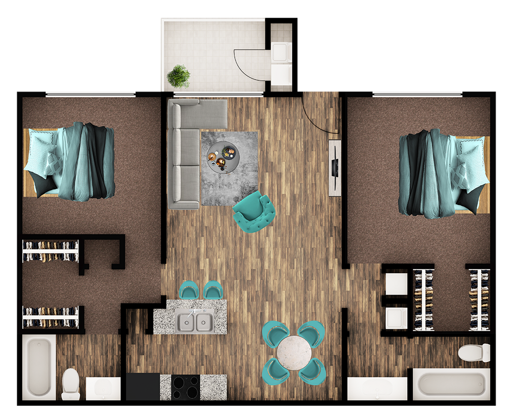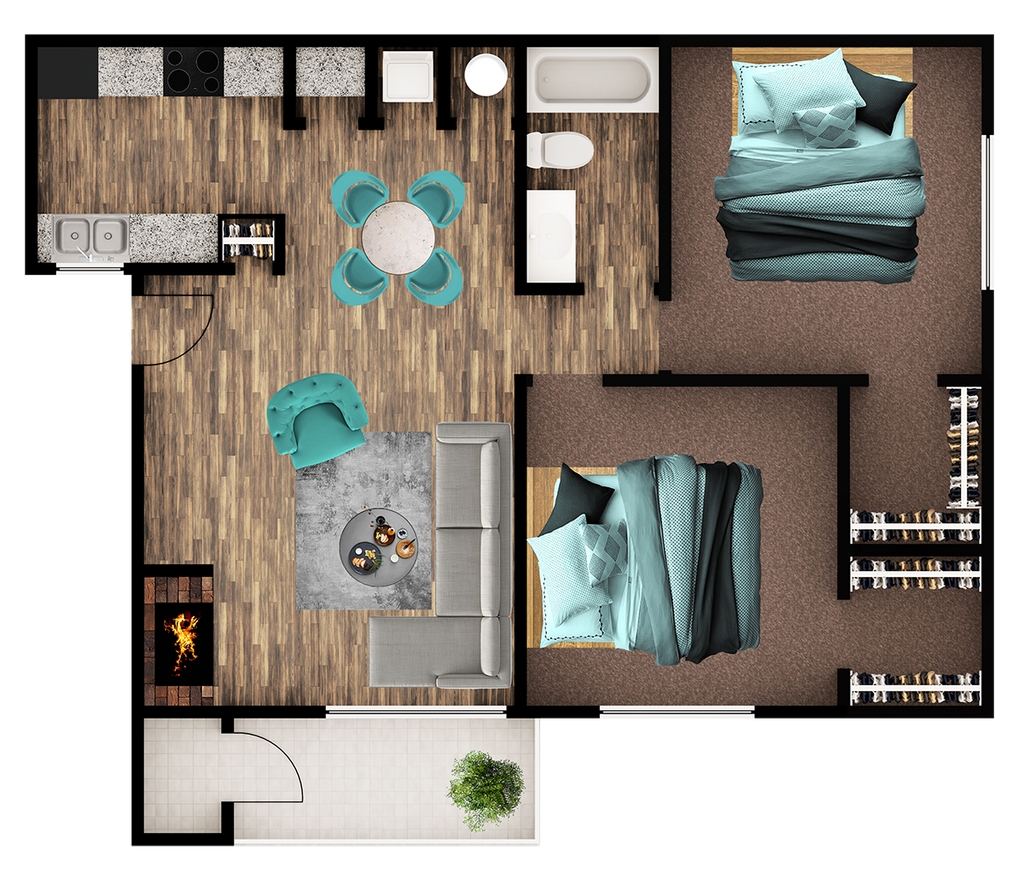 Modelo de apartamento: RobinDesde $8941 Dormitorio, 1 Baño, 720 sq ftDisponible Ahora![]()