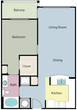 1 Dormitorio, 1 Baño, 868 pies²Galería del Modelo