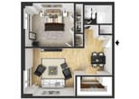 1 Dormitorio, 1 Baño, 667 pies²Disponible Nov 15Galería del Modelo