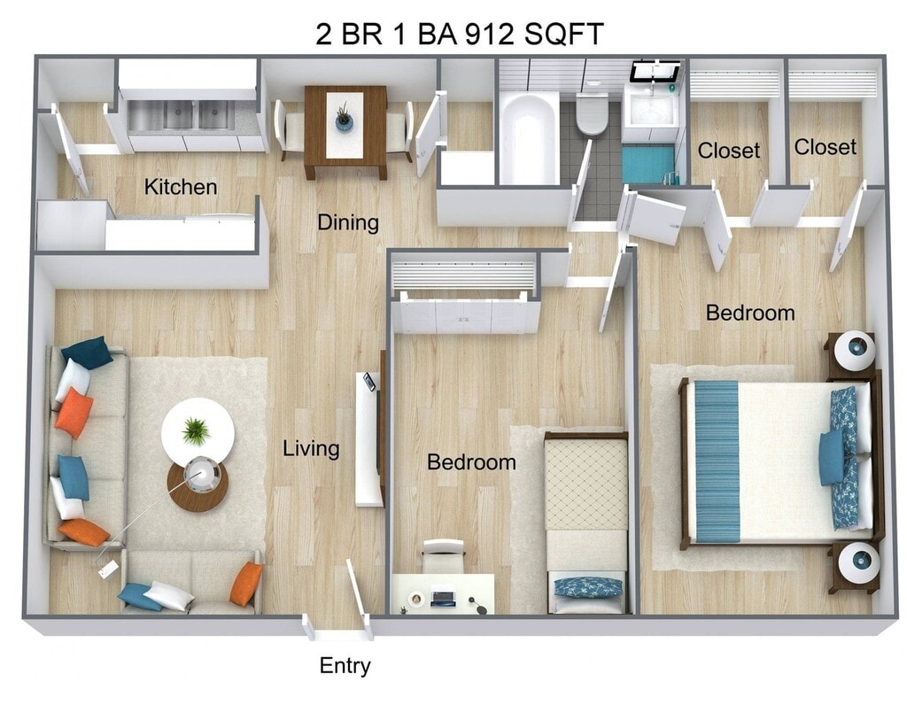 1 Dormitorio, 1 Baño, 720 pies²Disponible AhoraGalería del Modelo