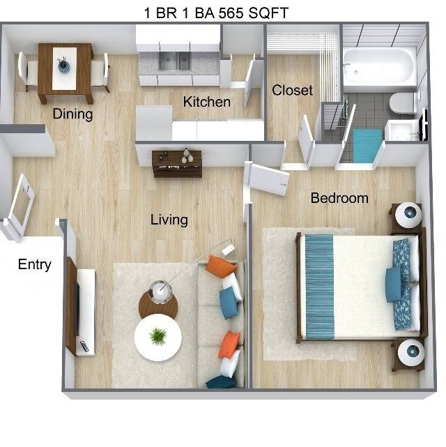 Modelo de apartamento: A1RDesde $6611 Dormitorio, 1 Baño, 565 sq ftDisponible Ahora![]()