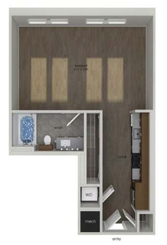 S02 - Plano Unidad de apartamento: 4113Modelo de apartamento: S02Desde $1,978Estudio, 1 Baño, 598 sq ftDisponible July 2, 20261 Dormitorio