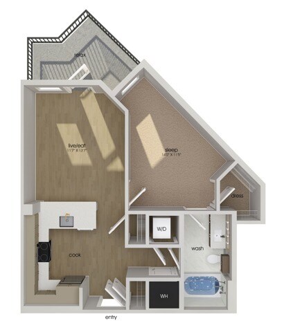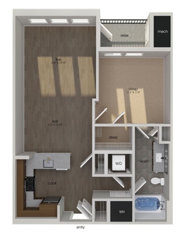 1 Dormitorio, 1 Baño, 752-826 pies²Disponible AhoraGalería del Modelo