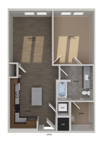 1 Dormitorio, 1 Baño, 640-704 pies²Disponible AhoraGalería del Modelo