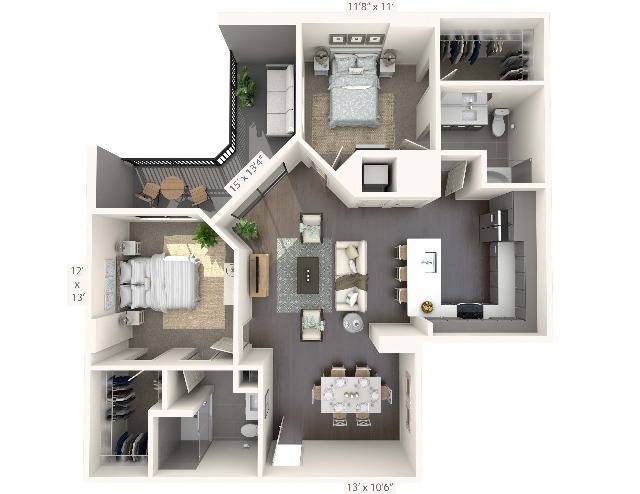 Modelo de apartamento: MerlotDesde $2,6651 Dormitorio, 1 Baño, 787 sq ftDisponible January 12, 2026![]()
