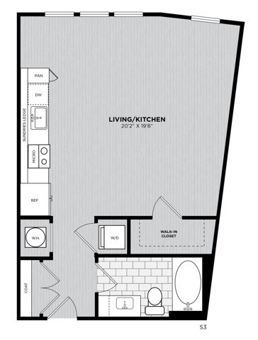 Modelo de apartamento: AceLlame para PreciosEstudio, 1 Baño, 572 sq ftNo DisponibleAce - Plano 1 ACE (WDU)