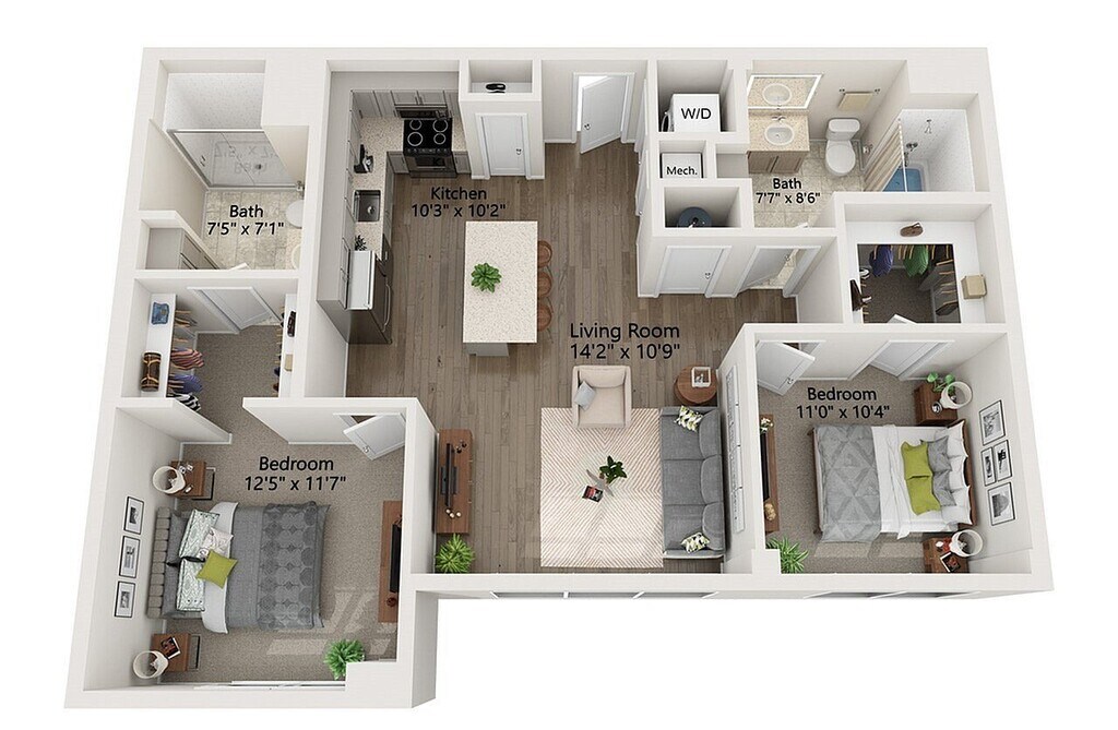 1 Dormitorio, 1 Baño, 752 pies²Precio Mensual TotalDisponible AhoraGalería del Modelo