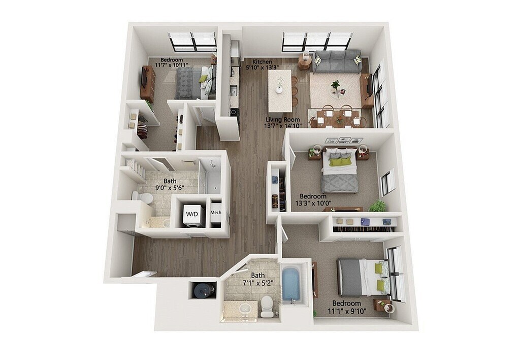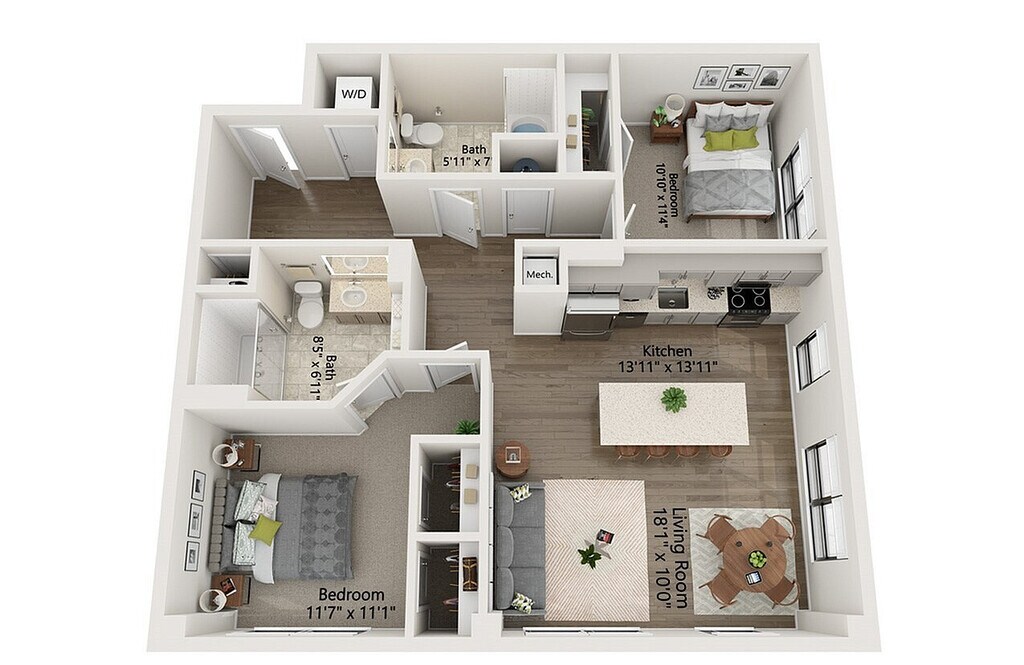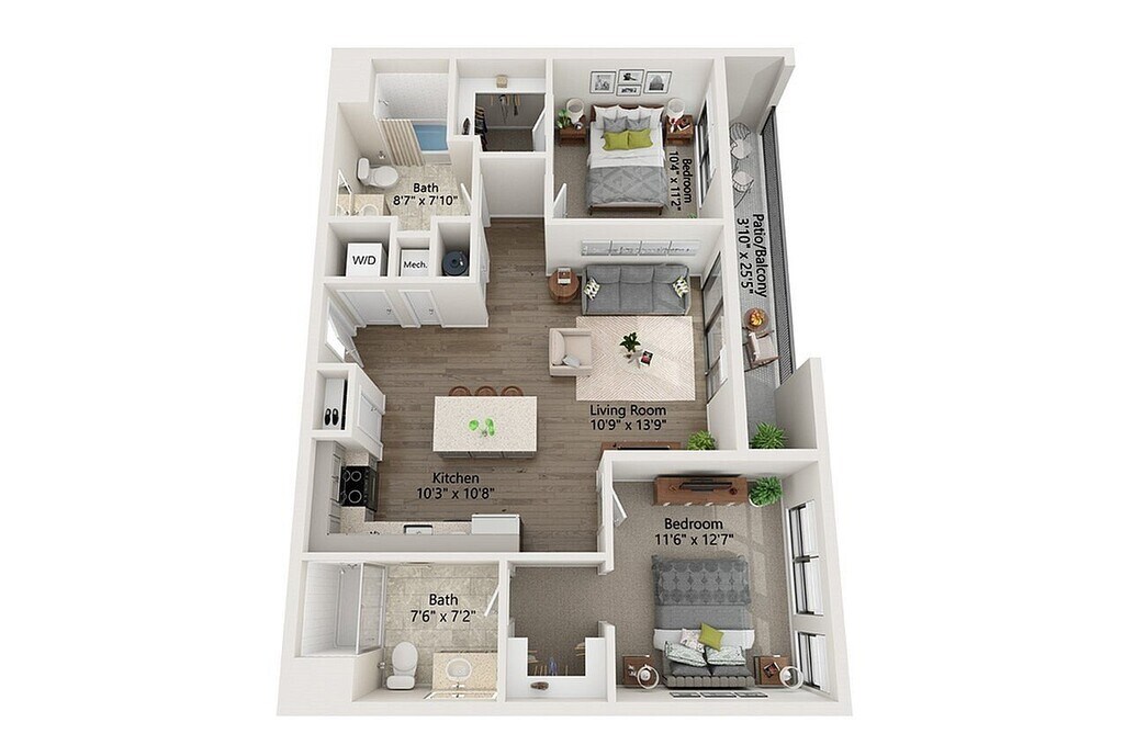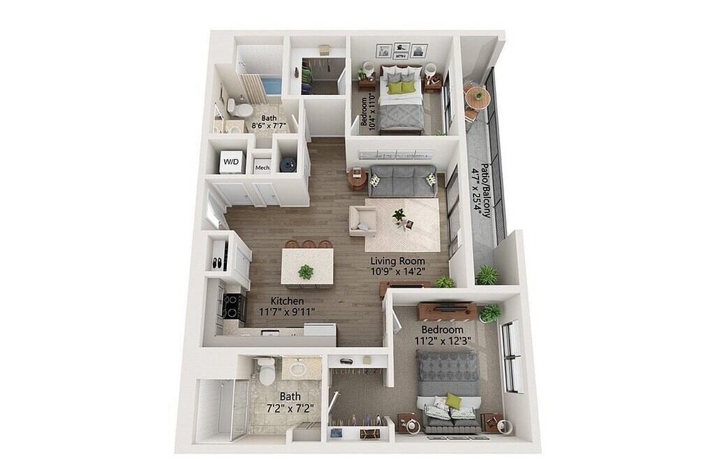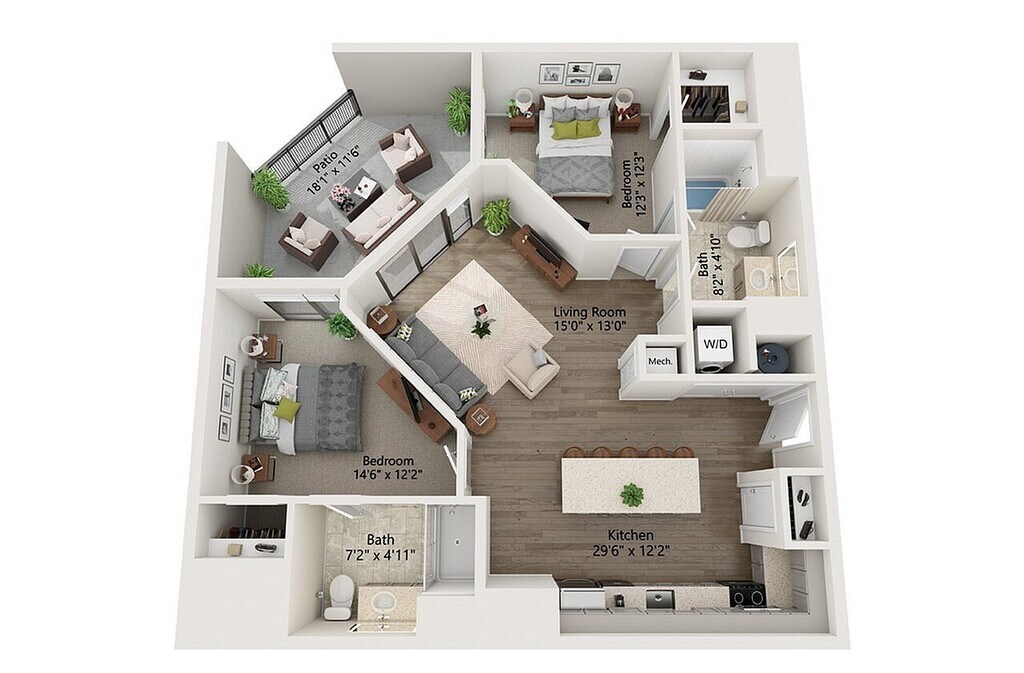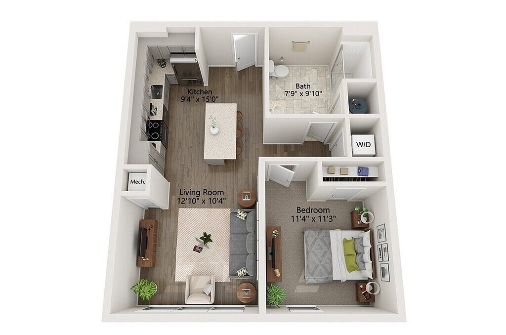 Modelo de apartamento: A9Desde $2,6701 Dormitorio, 1 Baño, 752 sq ftDisponible Ahora![]()