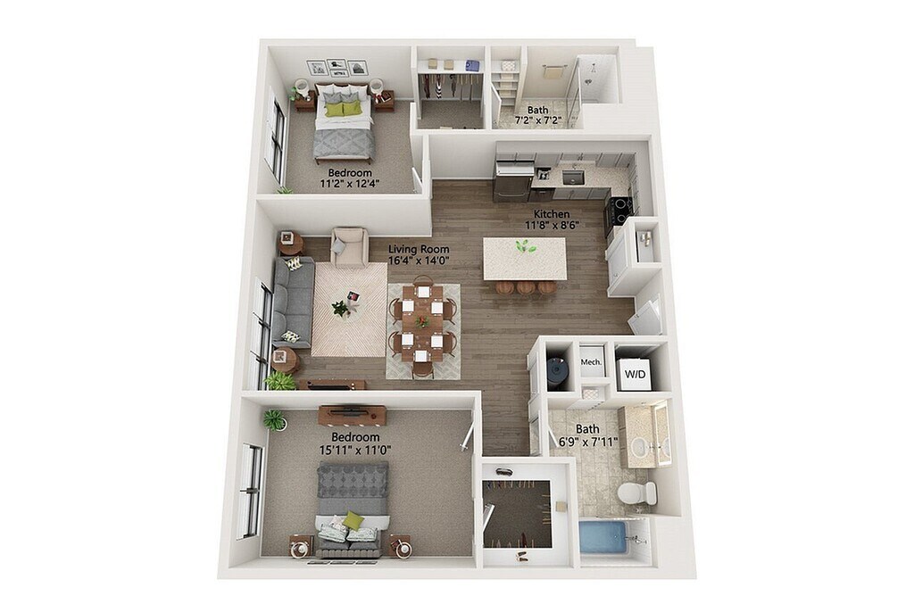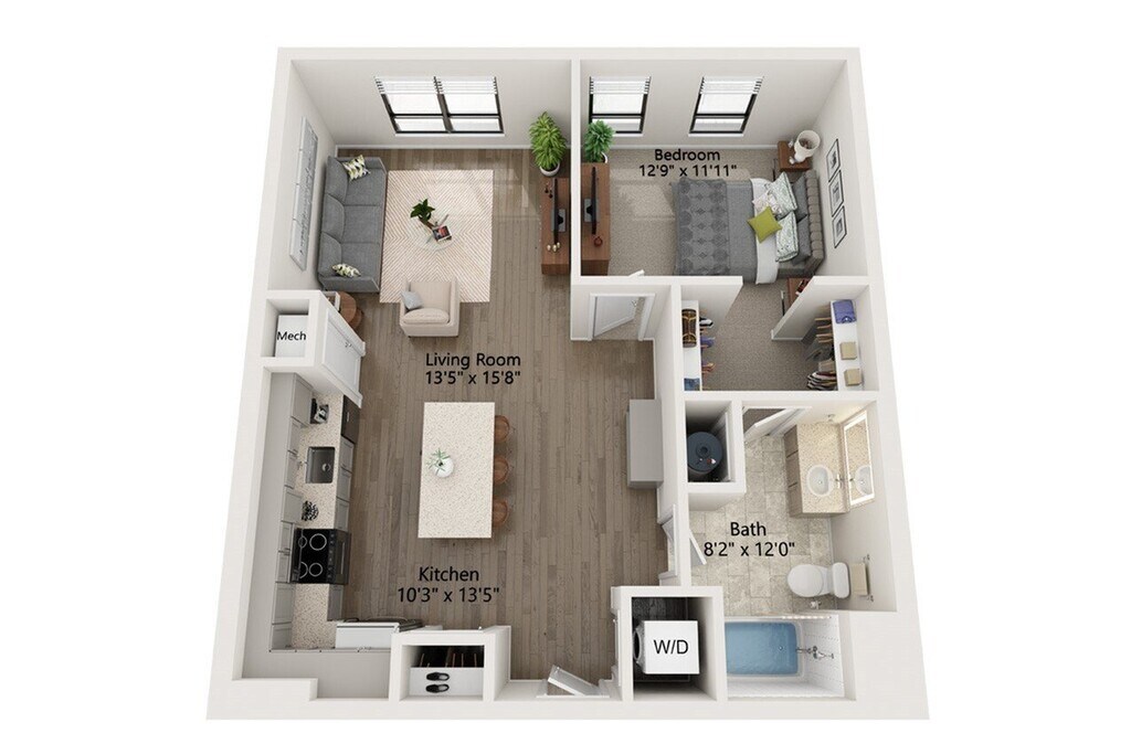 Modelo de apartamento: A12Desde $2,6991 Dormitorio, 1 Baño, 783 sq ftDisponible Ahora![]()