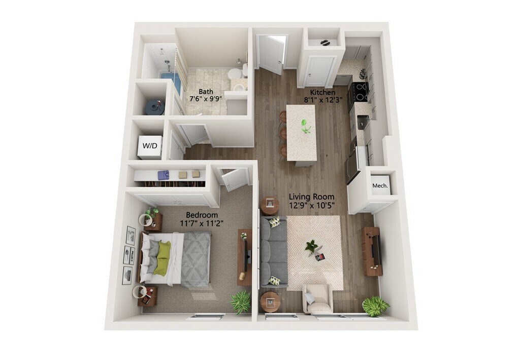 A12 - Plano 1 Unidad de apartamento: 203Modelo de apartamento: A12$2,6991 Dormitorio, 1 Baño, 783 sq ftDisponible AhoraPlano: A2