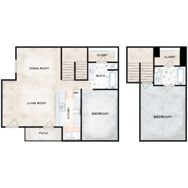 1 Dormitorio, 1 Baño, 667-788 pies²Galería del Modelo