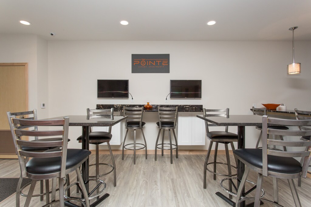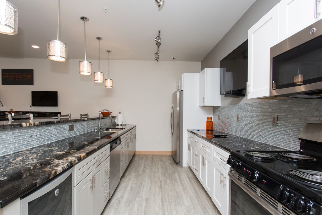 The Pointe cuenta con apartamentos de lujo de una habitación, y apartamentos de dos habitaciones, que incluyen amplios planos de planta, enormes ventanas y techos de 9 pies. The Pointe apartamentos fueron construidos con componentes de alta calidad que incluyen encimeras de granito a medida y tocadores, de alta eficiencia, de tamaño grande, lavadoras y secadoras de carga frontal, electrodomésticos GE de acero inoxidable y pisos excelente (alfombra y tile). Ofrecemos una variedad de planos de planta, con claraboyas y techos abovedados en algunos apartamentos. Los residentes disfrutan de nuestro Club Pointe sala comunitaria, que incluye una cocina de catering completa, televisores de alta definición, conexión Wi-Fi y de los residentes. La propiedad cuenta con un amplio espacio de entretenimiento al aire libre, Pointe patio, que consta de una cancha de deportes multiuso, un área de parrilla con barbacoa y brasero. The Pointe está ubicado en un hermoso entorno junto Quarry Cove, un parque arbolado de 7 acres; el Military Ridge Trail sendero para bicicletas, y área recreativa de Quarry Ridge están cerca. The Pointe vecindario incluye: Target Superstore, Hy-Vee Supermarket, Princeton Club, tiendas, elegantes restaurantes y salas de cine. Estamos a solo minutos de Epic, con fácil acceso a la autopista 18/151 y la circunvalación Beltline. Se admiten gatos.