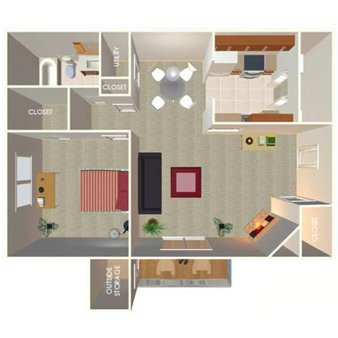1 Dormitorio, 1 Baño, 775 pies²Disponible AhoraGalería del Modelo