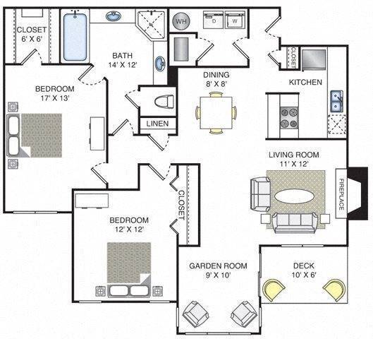 Modelo de apartamento: LagoDesde $1,0221 Dormitorio, 1 Baño, 610 sq ftDisponible Ahora![]()
