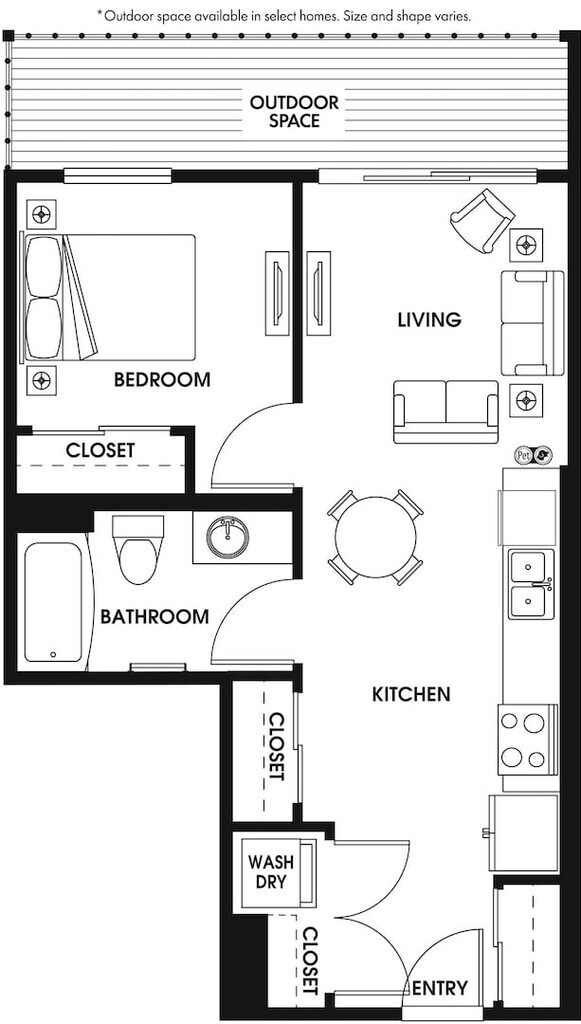 1 Dormitorio, 1 Baño, 787-799 pies²Disponible Apr 12El más grandeEsta opción tiene las unidades más grandes para este modeloGalería del Modelo