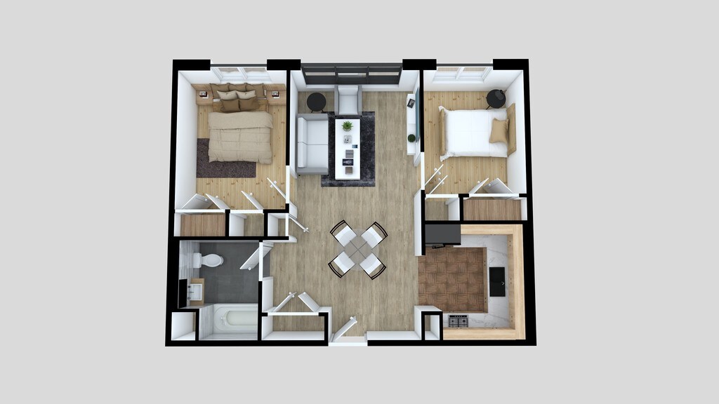 2 Dormitorios, 1 Baño, 690-750 pies²Disponible AhoraGalería del Modelo