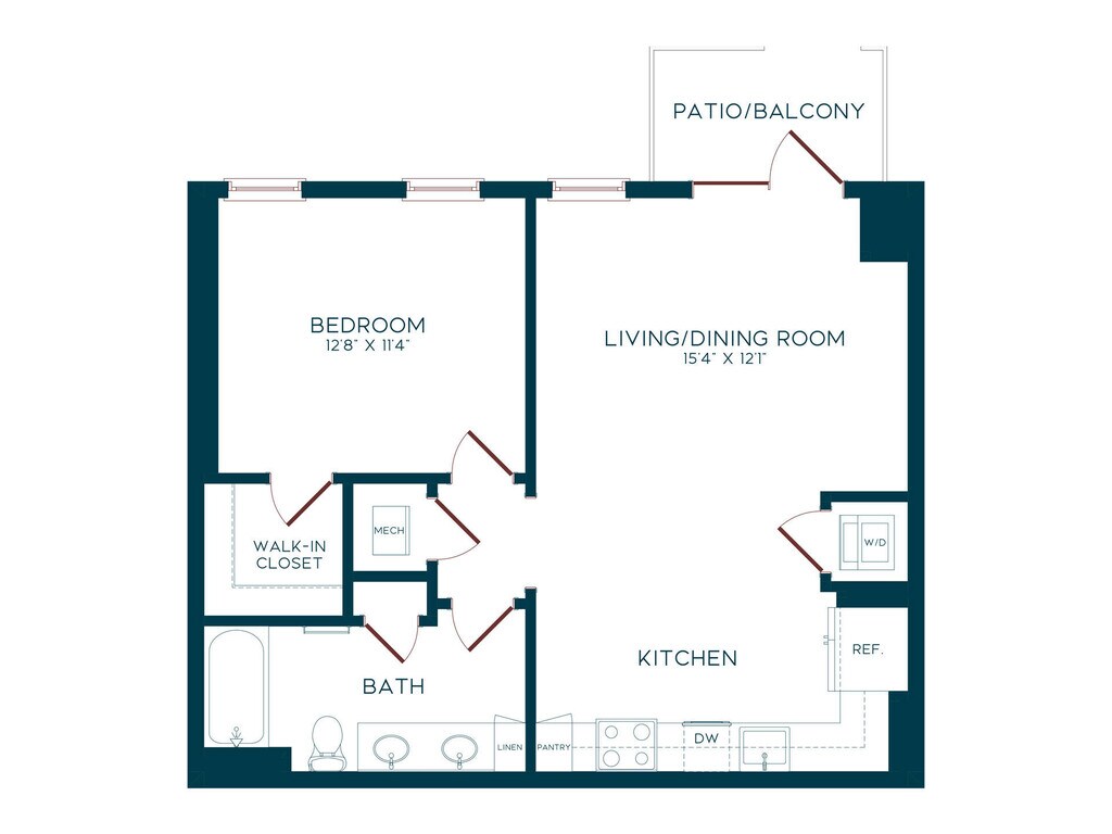 Estudio, 1 Baño, 613 pies²Disponible AhoraGalería del Modelo