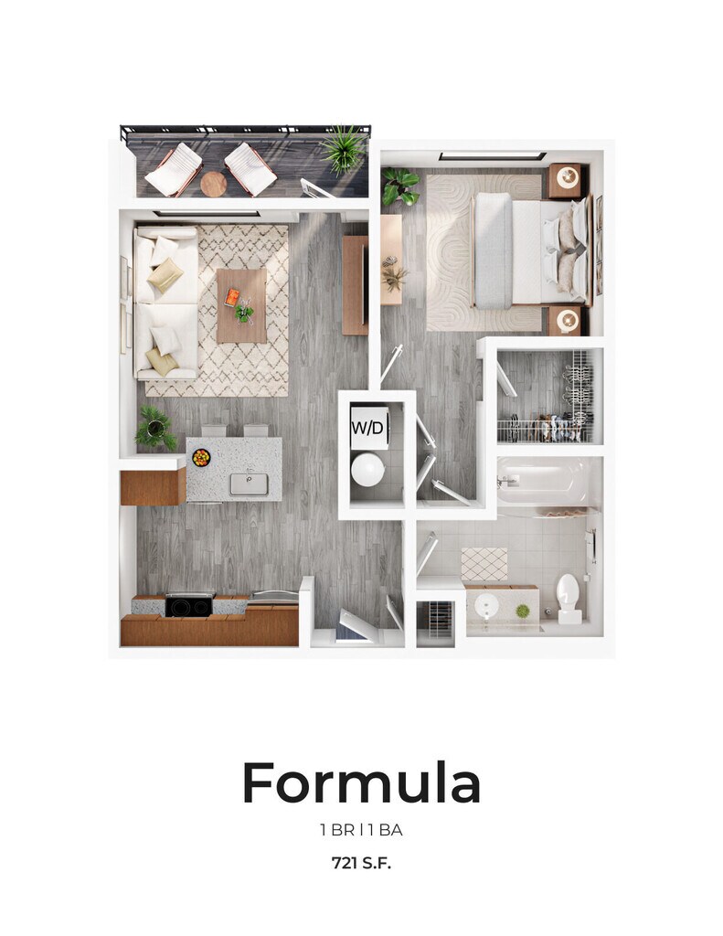 The Formula - Plano 1 Unidad de apartamento: 319Modelo de apartamento: The Formula$1,8321 Dormitorio, 1 Baño, 721 sq ftDisponible January 1, 2026The Contour