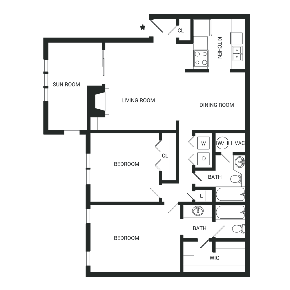 Modelo de apartamento: BeechnutDesde $9691 Dormitorio, 1 Baño, 610 sq ftDisponible Ahora![]()