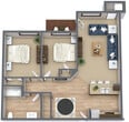 Modelo de apartamento: Two Bedroom/ Two Bathroom$1,4452 Dormitorios, 2 Baños, 970 sq ftDisponible AhoraTwo Bedroom/ Two Bathroom - Plano 1