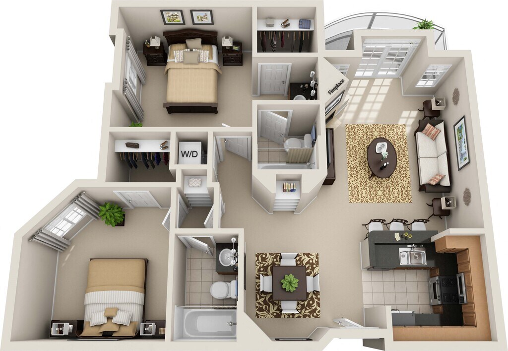 Modelo de apartamento: Two Bedroom BDesde $3,4252 Dormitorios, 2 Baños, 945 sq ftDisponible Ahora![]()